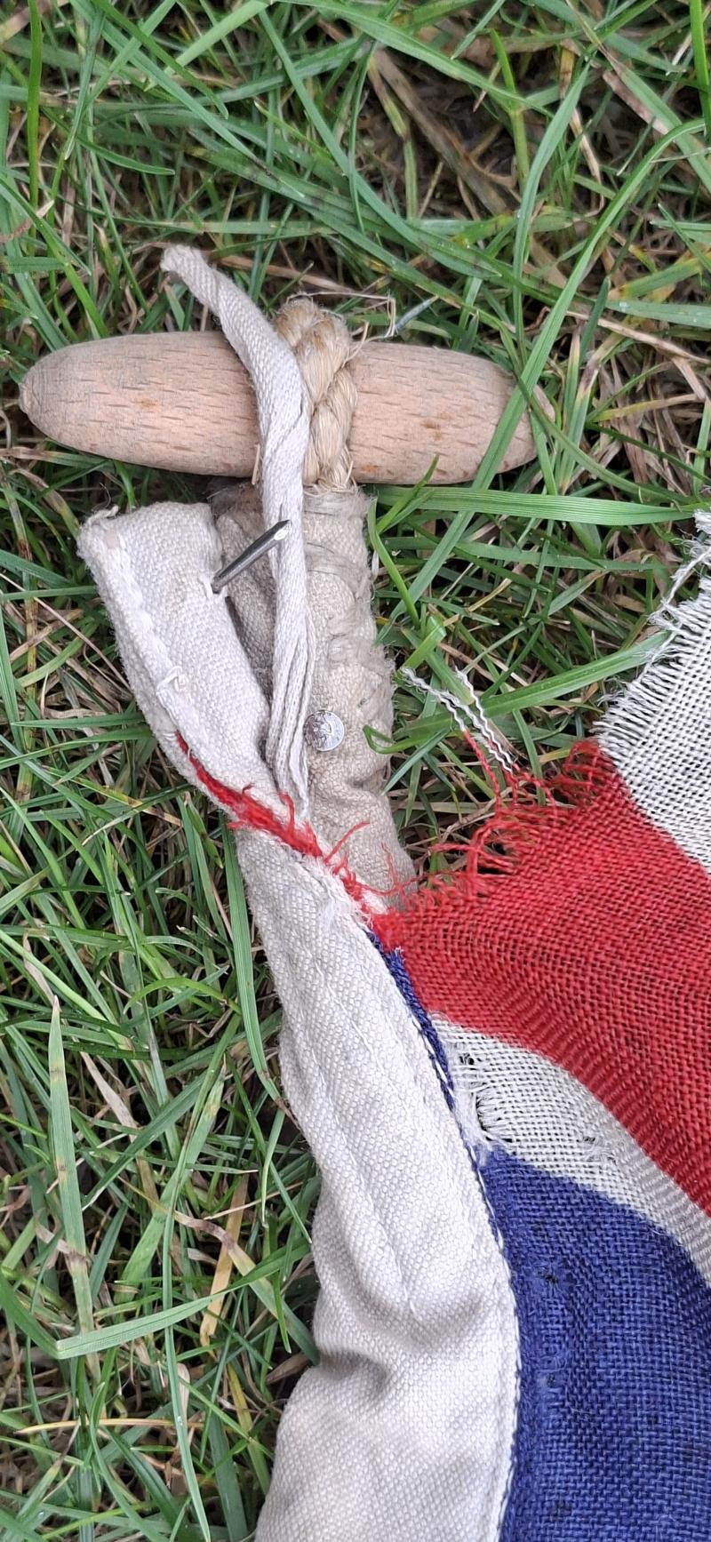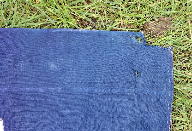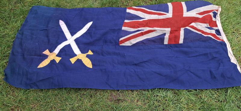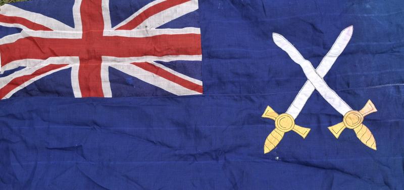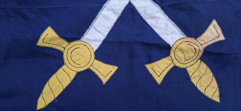 Large size 34 inches X 72 inches , double sided with separately applied swords , has some loses but still bright colours