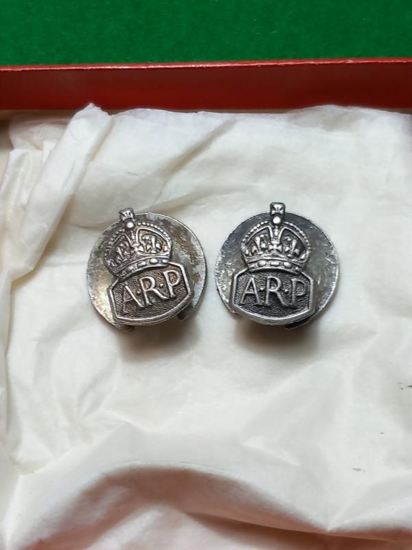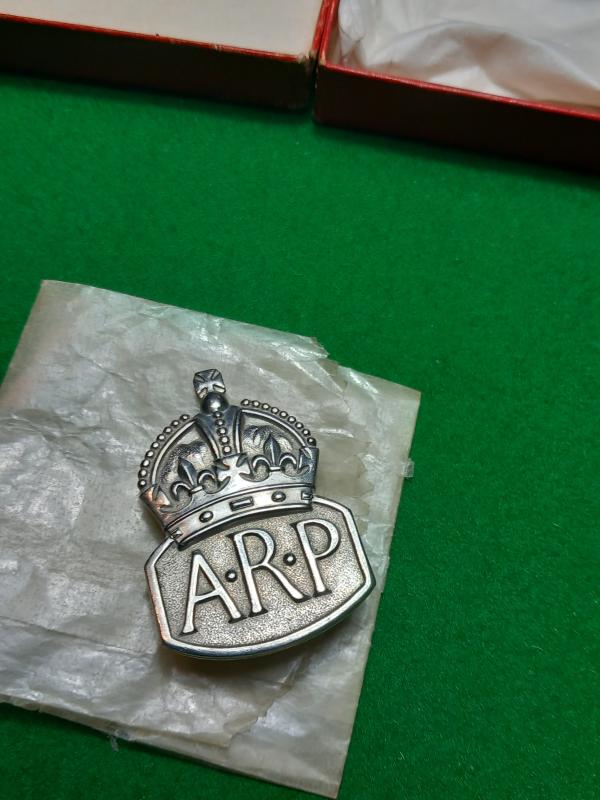 A very clean Air Raids Precautions badge in near mint condition. Complete with small miniature versions . Exactly as found .