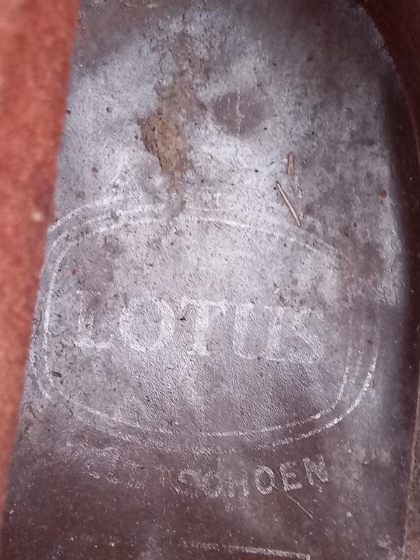 A good clean pair with original laces ,manufactured by 'Lotus 'a famous brand ,great to complete a mannequin would do for a Great War officer impression.