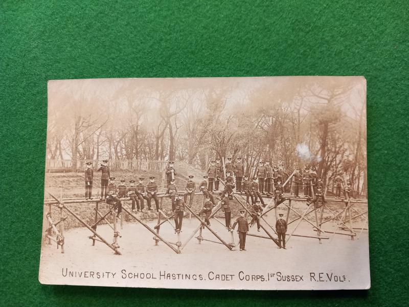 Original post cards ( 2 ) photograph. University Schools Hastings Cadet Corps 1st Sussex .R.E Vols. Good clean condition.