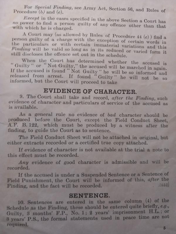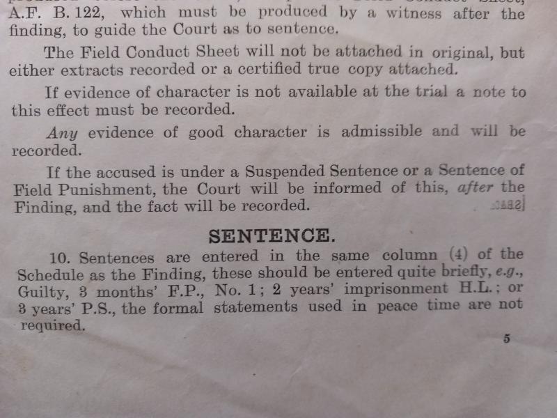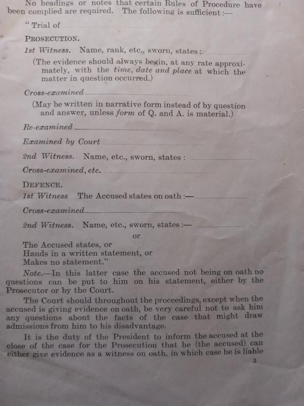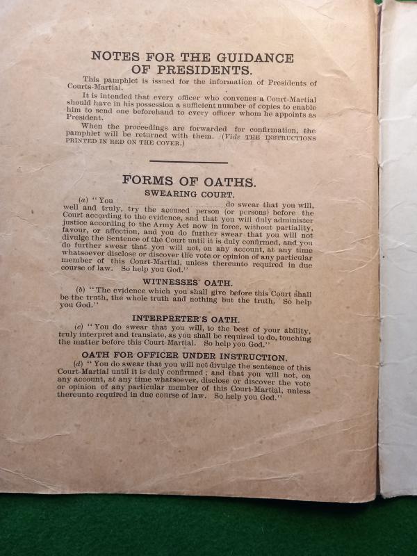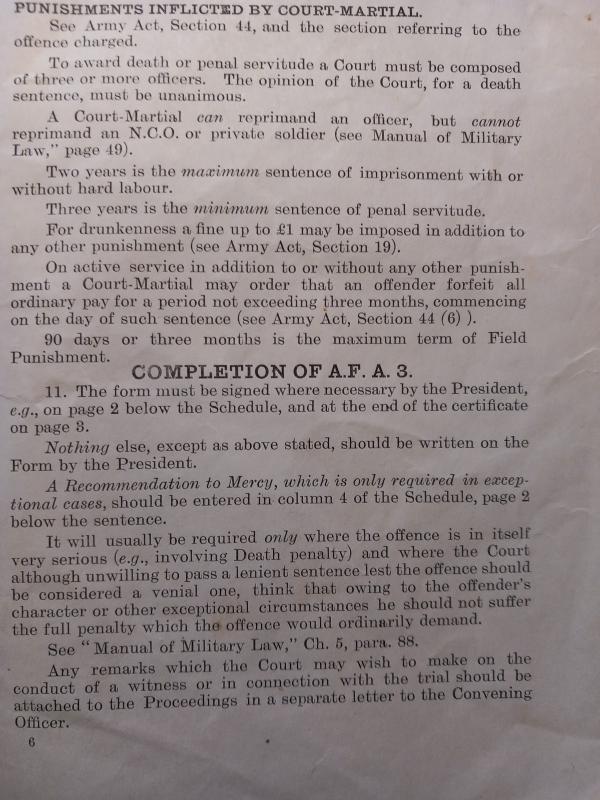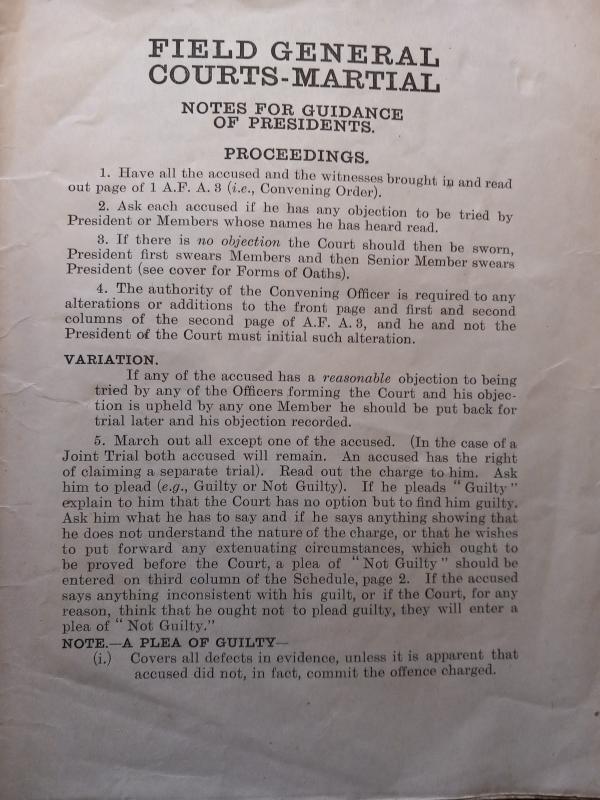 1916 dated Field General Courts -Marshall. ` Notes for guidance of Presidents ` Hand written details ` 1st Gordon Highlanders` A superb rare & emotive survivor
